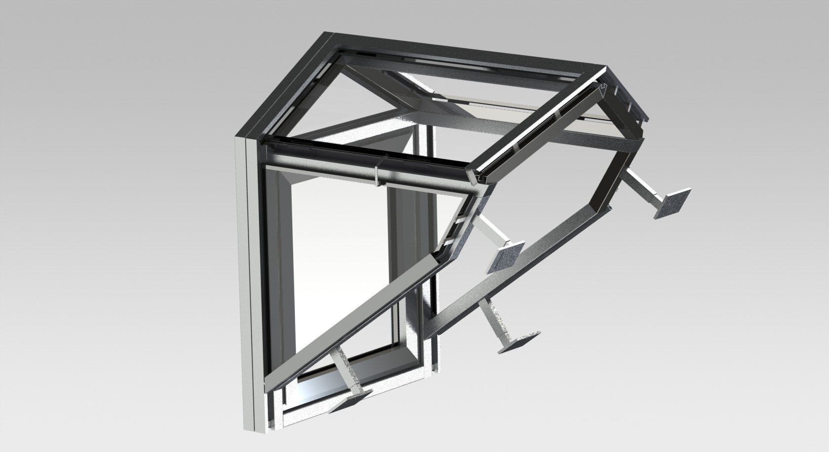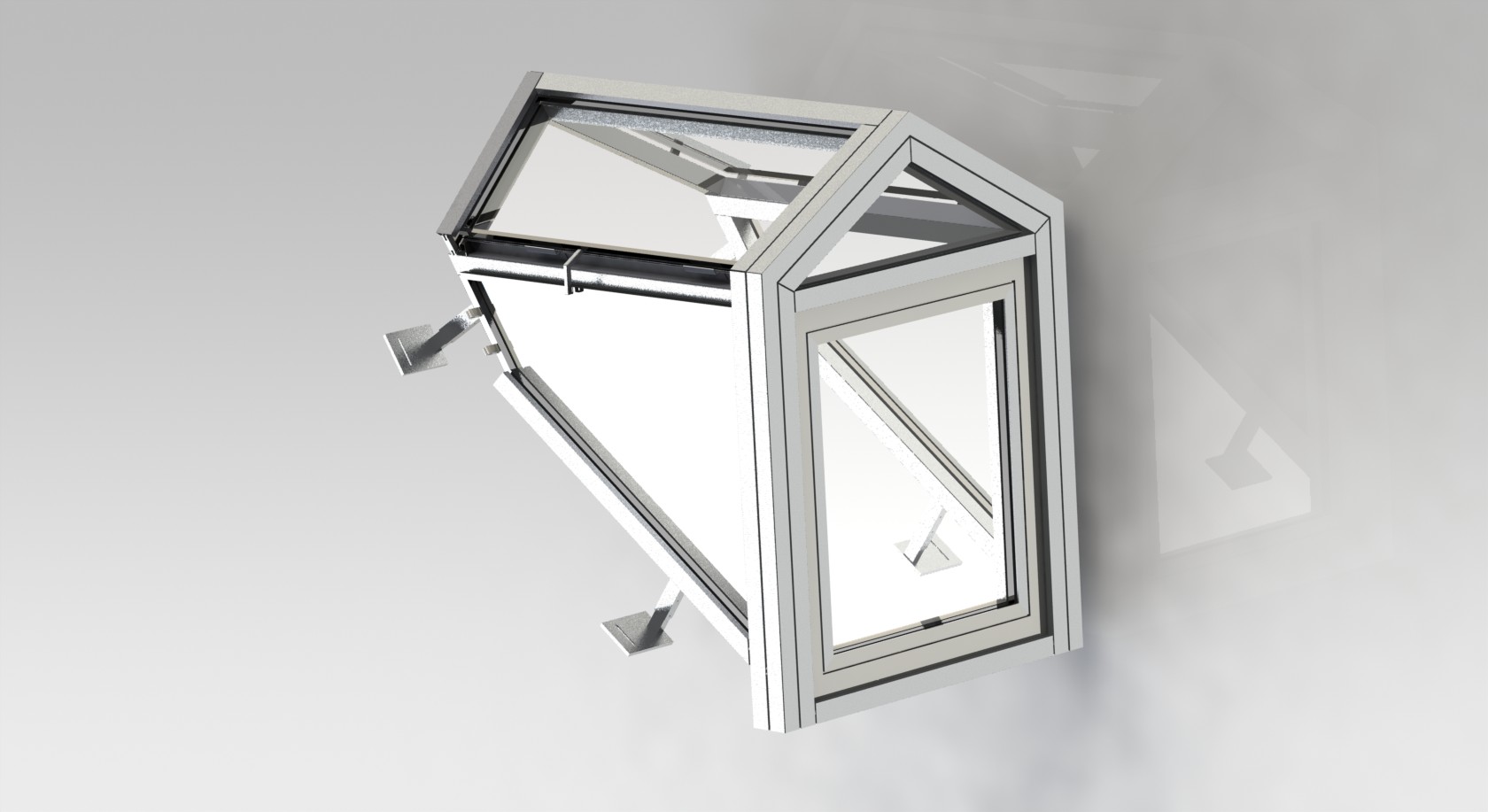 Structure acier tubulaire poteau traverse avec verre isolant pincé, capots et tôlerie en aluminium de liaison et raccord à la toiture en ferblanterie. Un ouvrant sur la façade avant en ouverture oscillo-battante a été installé.