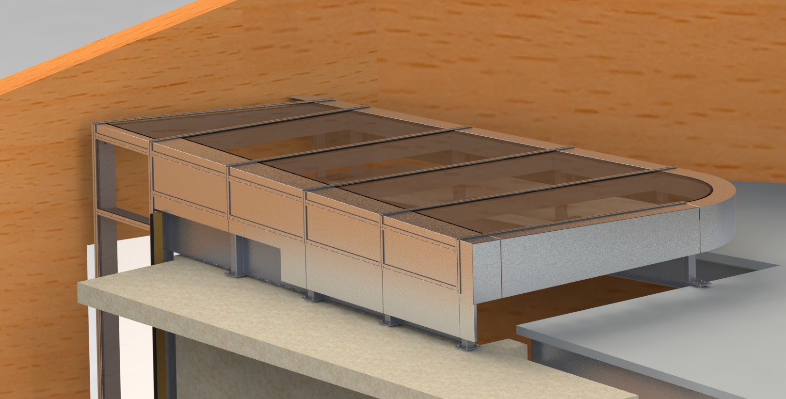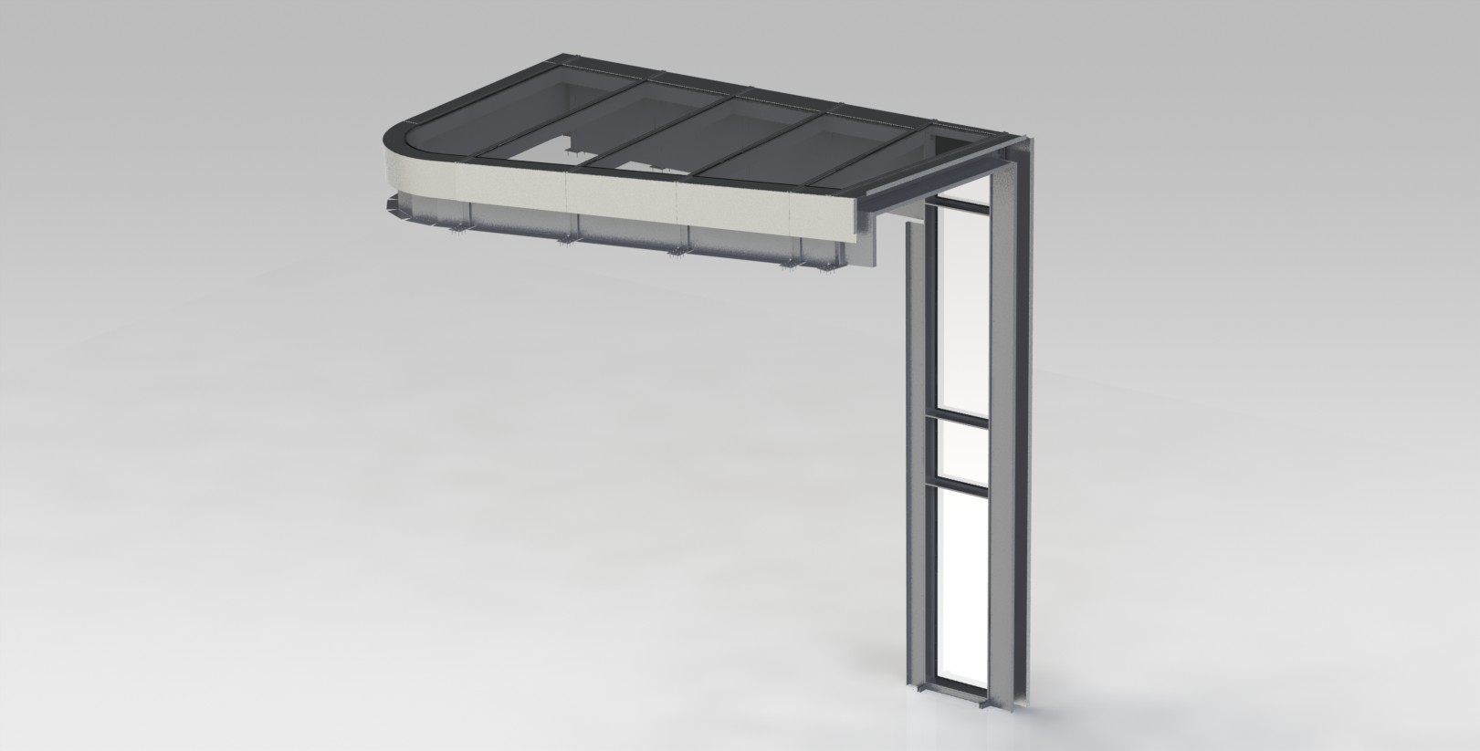 Ce projet consistait à développer des façades et verrières dans l’extension d’un bâtiment. La géométrie complexe a été scannée en 3D, puis reprise dans le logiciel 3D.