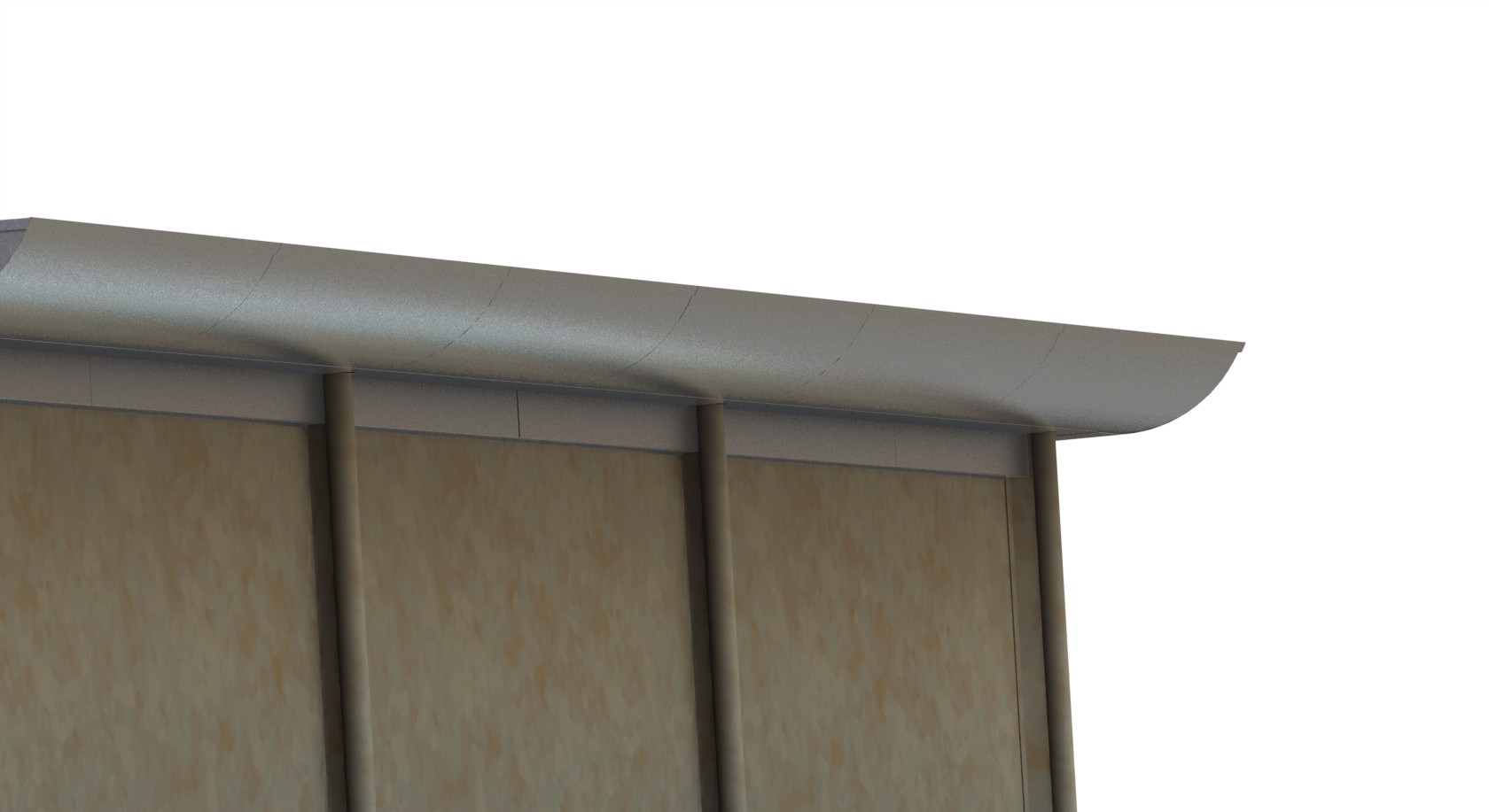 Cet espace de vente souhaitait habiller de tôles arrondies son acrotère afin de donnér une forme active et fluide.